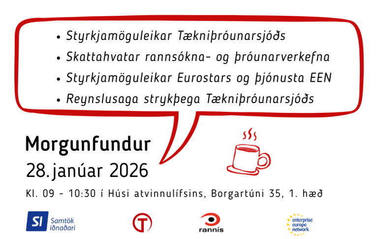 Samtök iðnaðarins og Rannís standa fyrir kynningarfundi um Tækniþróunarsjóð og þjónustu Enterprise Europe Network miðvikudaginn 28. janúar kl. 9:00-10:30 í Húsi atvinnulífsins, Borgartúni 35, á 1. hæð. Sérfræðingar frá Rannís munu